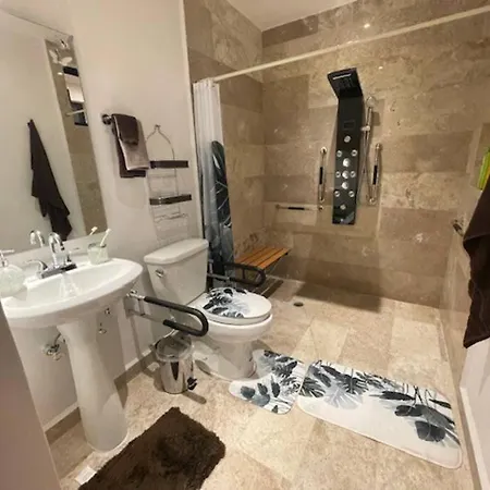 Handicap Accessible Studio Tulum公寓有1间卧室. Handicap Accessible Studio Tulum公寓公寓有1间浴室.这些浴室带有步入式淋浴间,分开的洗手间 和水槽.